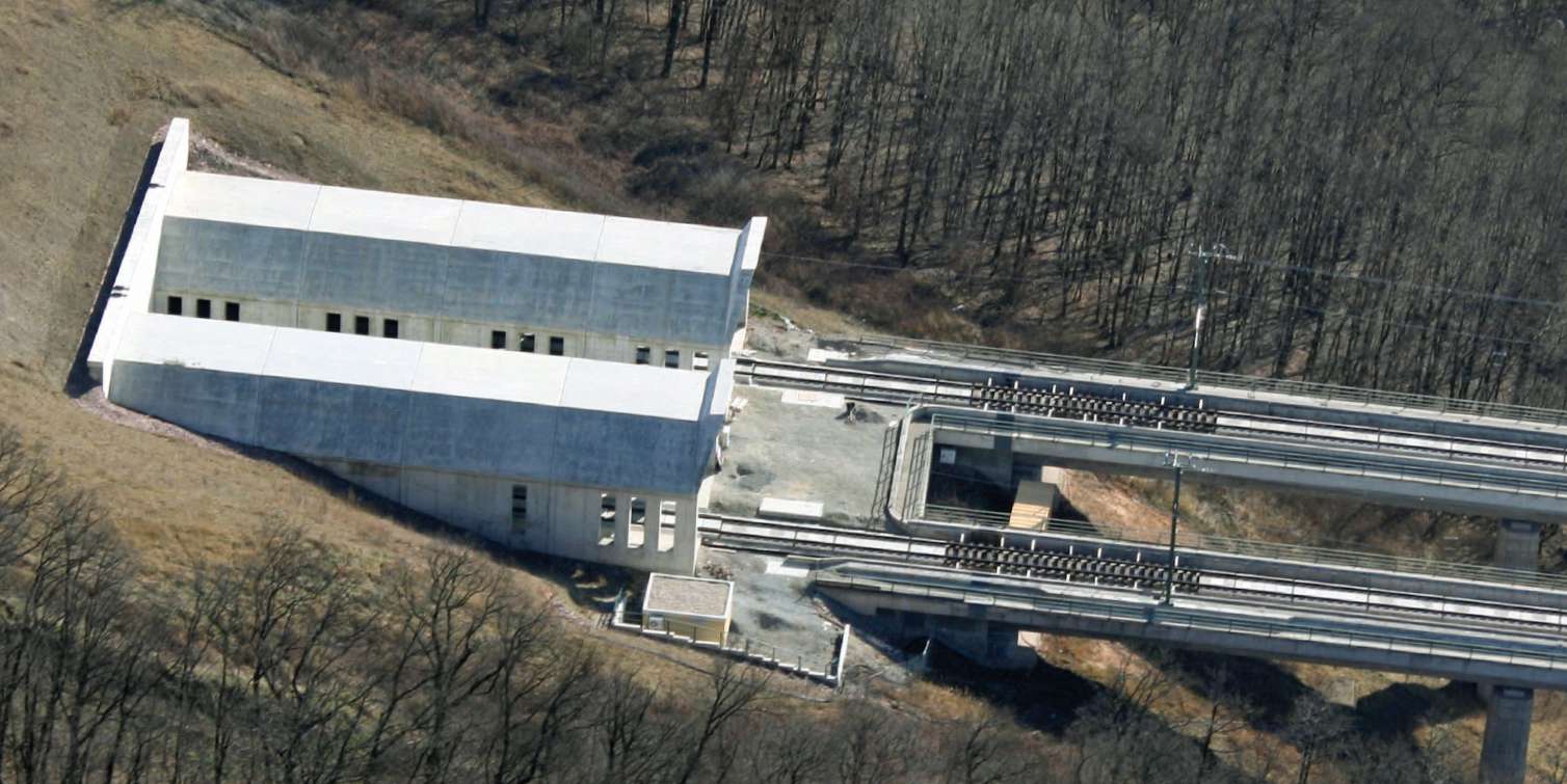 Da die Röhren mit 300 km/h befahren werden können, haben sich die Ingenieure an fünf Tunnelportalen etwas Besonderes einfallen lassen und modernsten Schallschutz verwirklicht. Wenn Züge mit hoher Geschwindigkeit durch einen Tunnel fahren, schieben sie Luftmassen vor sich her, die sich immer mehr auf- stauen und im ungünstigsten Fall mit einem Knall am Tunnelausgang entladen. Die so genannten Haubenbauwerke an den Portalen verhindern den Tunnelknall. Sie bewirken, dass sich die Druckwellen geräuschlos verwirbeln und ausbreiten können.